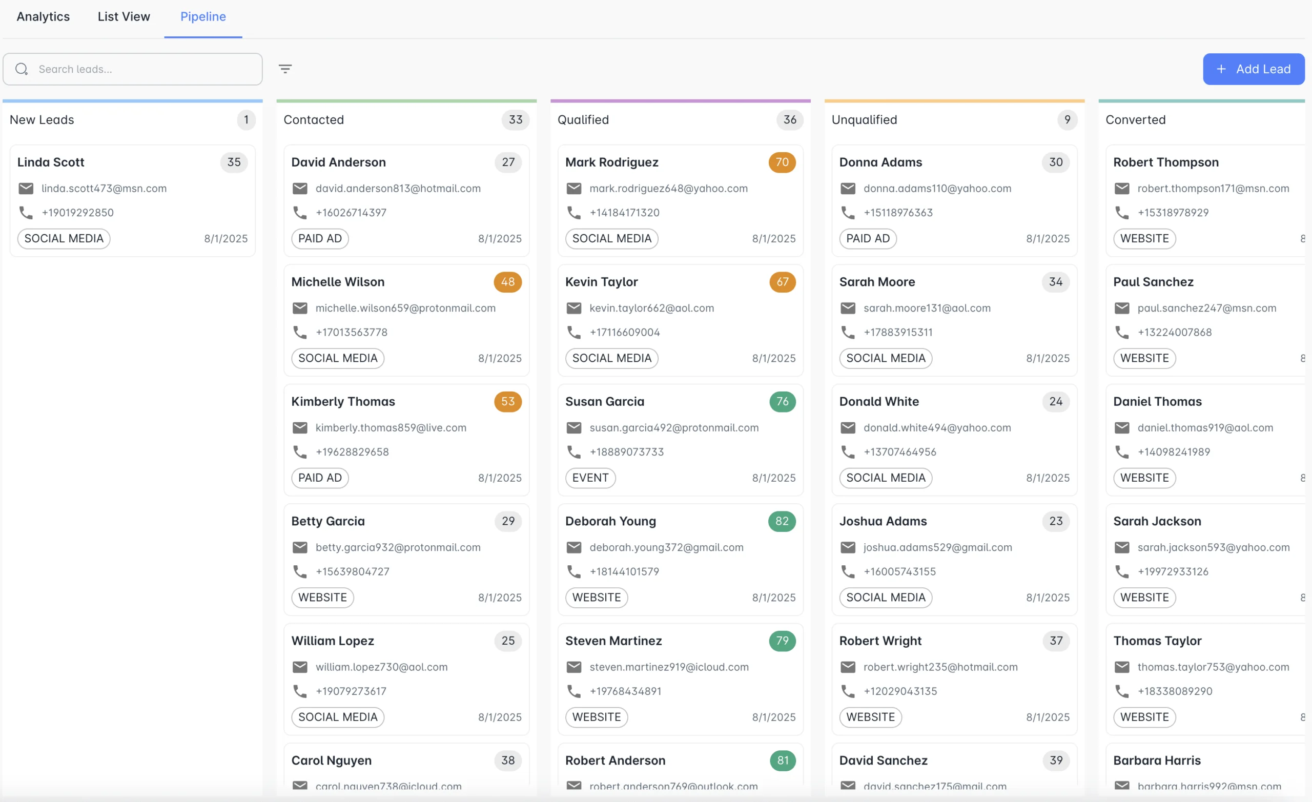Stop losing leads in spreadsheets. Visual pipelines, automated follow-ups, and conversion tracking that would make a sales team jealous.